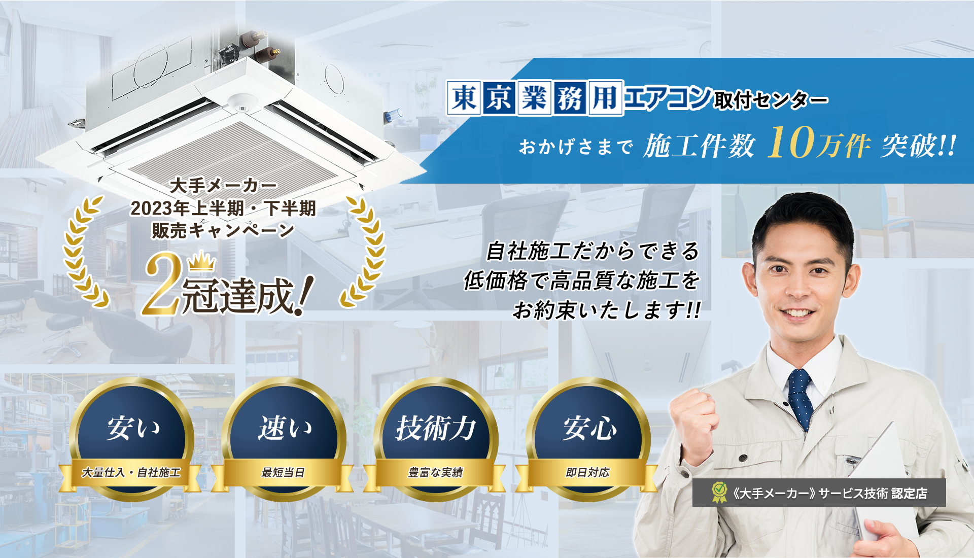 年間施工台数・販売実績を元に各仕入れ先と交渉ができ、業務用エアコンの業界最安値を実現できます!!