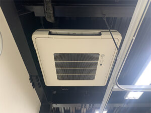 一般的に、業務用エアコンの表面のパネルにメーカーのブランドロゴが記載されていることが多いです。
